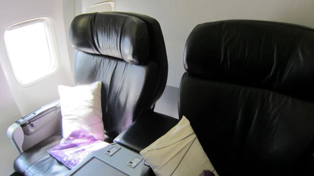 1 ряд включает только три кресла (АВС). Эти места относятся к повышенному комфорту «Front Rows». Пассажиры на этих местах находятся ближе к выходу, первыми получают питание и обслуживание. Также в первом ряду есть много места для ног, нет впереди сидящих людей. Здесь будет удобно сидеть пассажирам с маленькими детьми, так как на стене есть держатели для колыбелек. Кресло А в этом ряду немного уже, нежели ВС, так как находится в районе носового сужения борта.