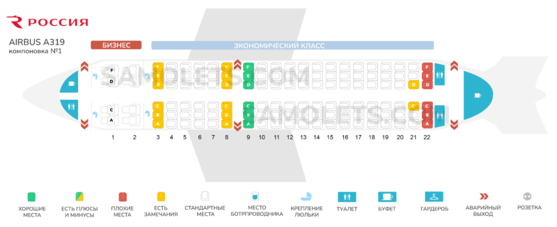Вы здесь: Схемы салонов самолетов / Россия / Airbus A319