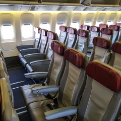 С 5 ряда начинается экономический класс. По информации от авиакомпании, расстояние между рядов составляет 74 см. Нужно отметить, что в этих самолетах кресла располагаются по схеме 3-4-3, что не очень удобно для пассажиров. Недостаток связан с теснотой салона.