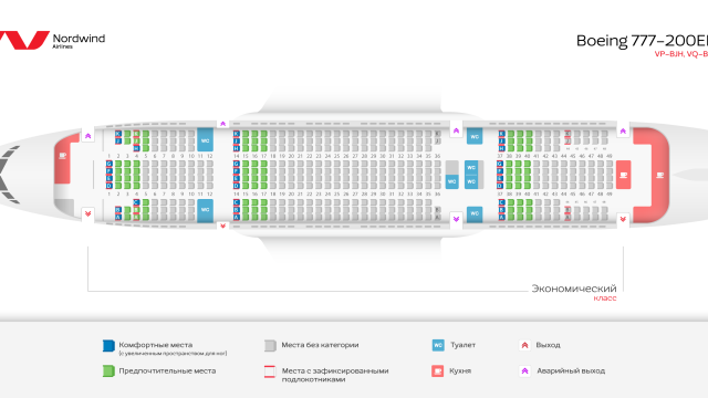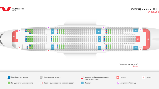 Вы здесь: Схемы салонов самолетов / Nordwind Airlines / Boeing 777-200